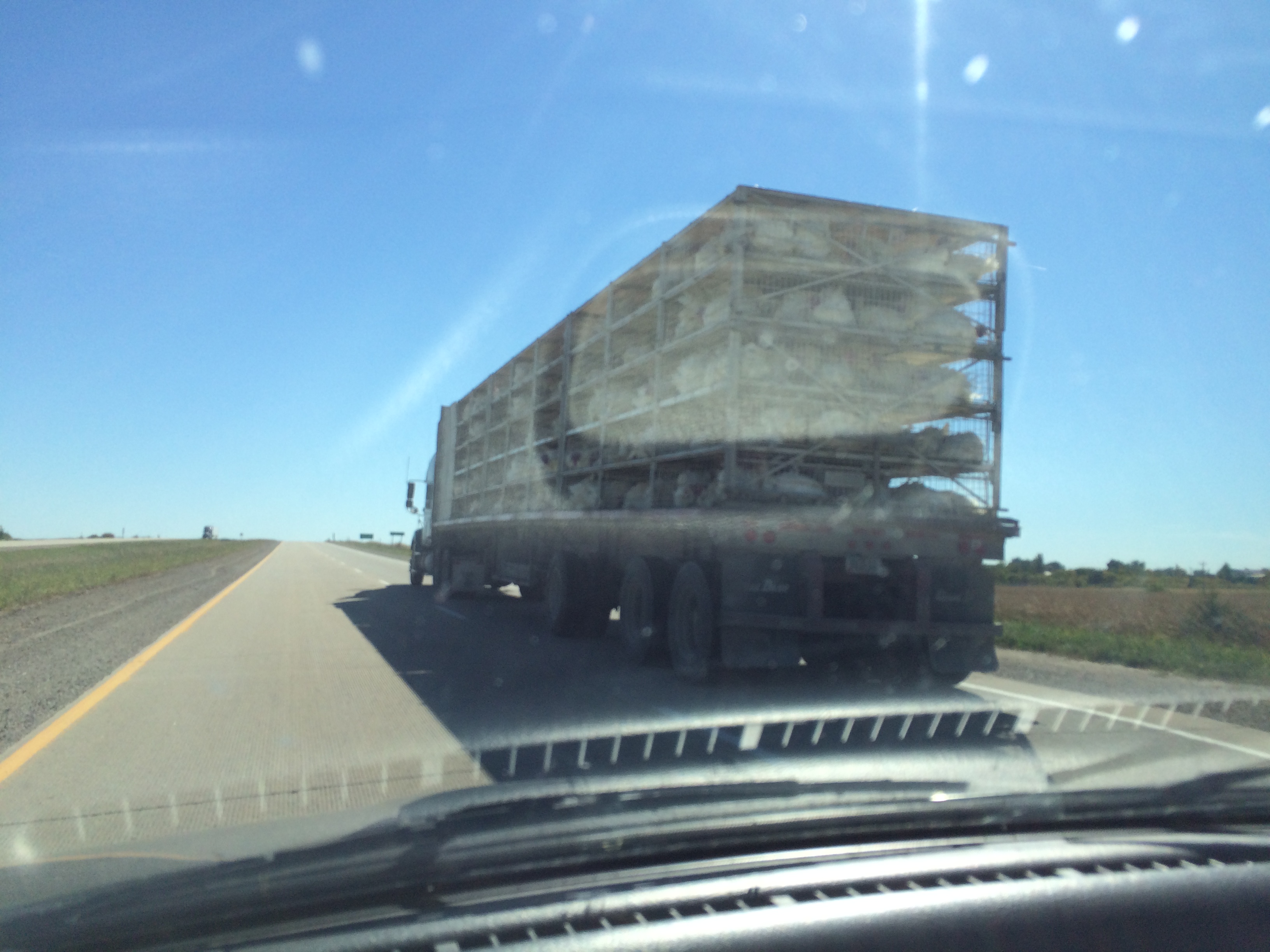 I left there and drove out of Iowa on a road I’ve never used to get out of Iowa: Highway 34. Funny story: usually as we enter or leave Iowa on I-80 we encounter a pig truck, along with its smell. But on this road, I encountered something I’ve never seen before: a turkey truck.